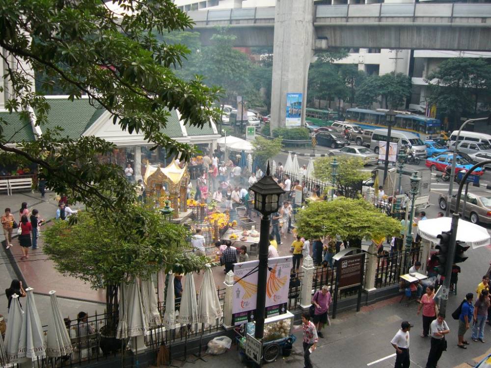 A busy Bangkok street scene. Shrines and temples are everywhere!