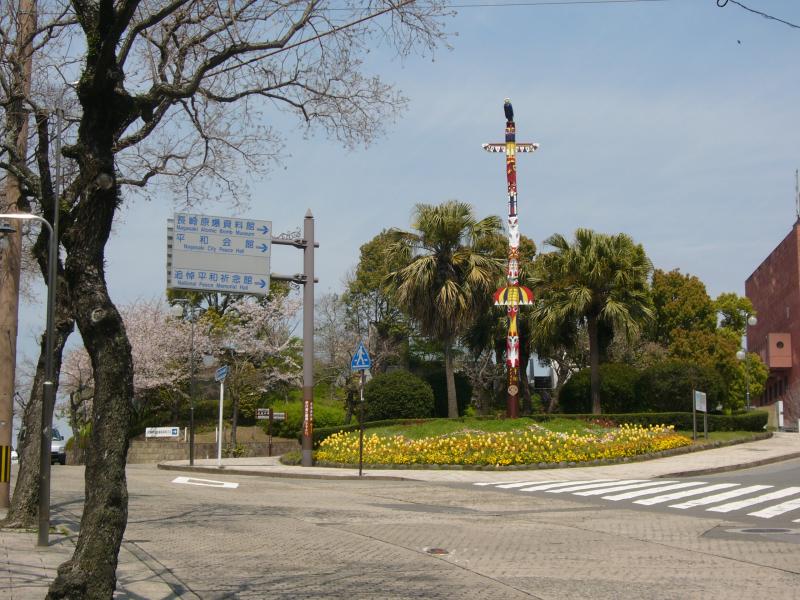 Cherry trees in full blossom, outside the Atomic Bomb Museum in Nagasaki, Kyushu, Japan