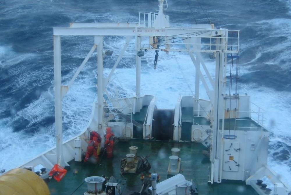 c.s. Pacific Guardian with some of the guys out on deck, braving atrocious weather in order to try and secure some mushroom anchors that had broken loose.