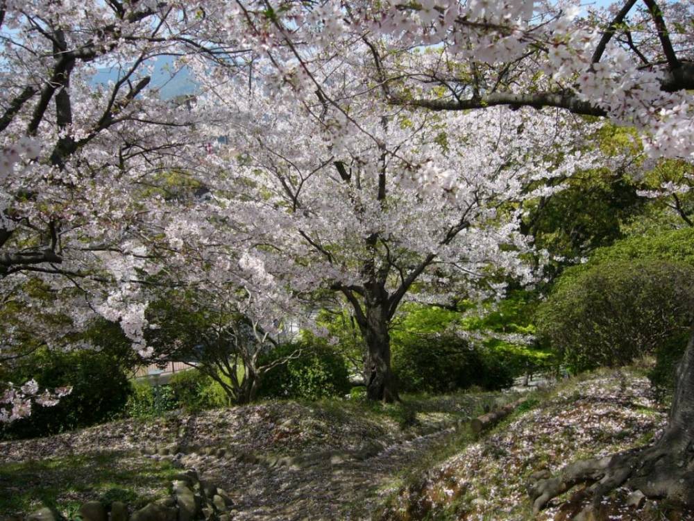 Cherry trees (sakura) in full blossom in a park next to the Atomic Bomb Museum in Nagasaki, Kyushu, Japan - April 7, 2006
