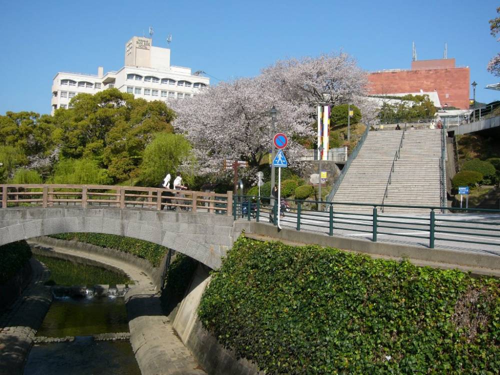 Cherry trees (sakura) in full blossom in a park next to the Atomic Bomb Museum in Nagasaki, Kyushu, Japan - April 7, 2006