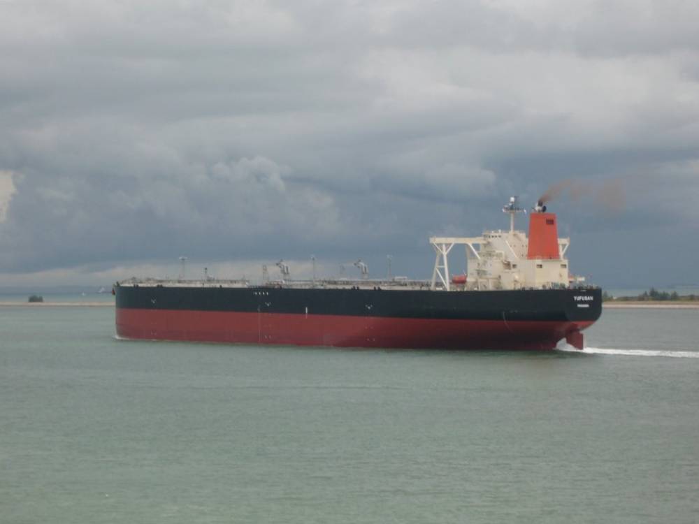 The Panamanian registered VLCC, Yufusan on passage down the Johore Straight, Singapore - May, 2008
