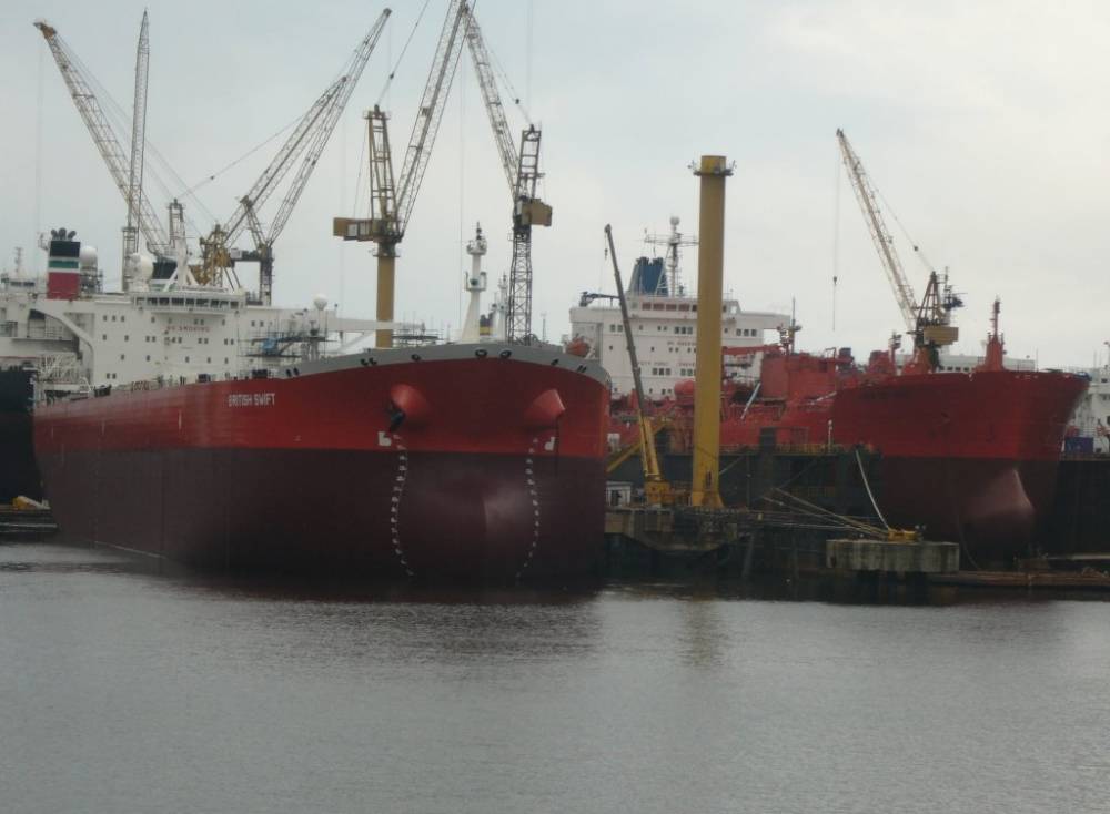 The VLCC British swift - and some other horrible ships in the shipyard at Sembawang, Singapore - May 2008