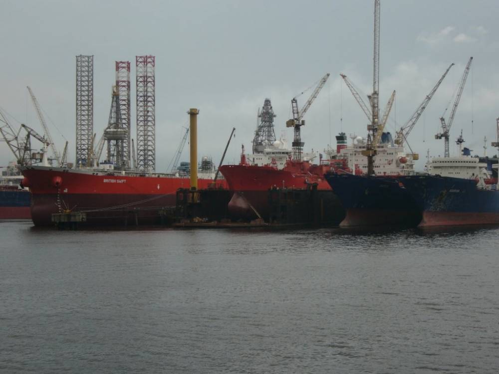 The VLCC British swift - and some other horrible ships in the shipyard at Sembawang, Singapore - May 2008