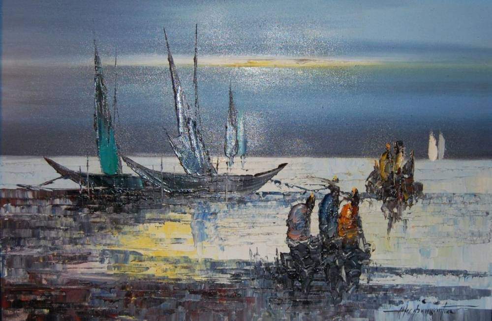 Alfredo Buenaventura Oil Painting - Fishing Boats