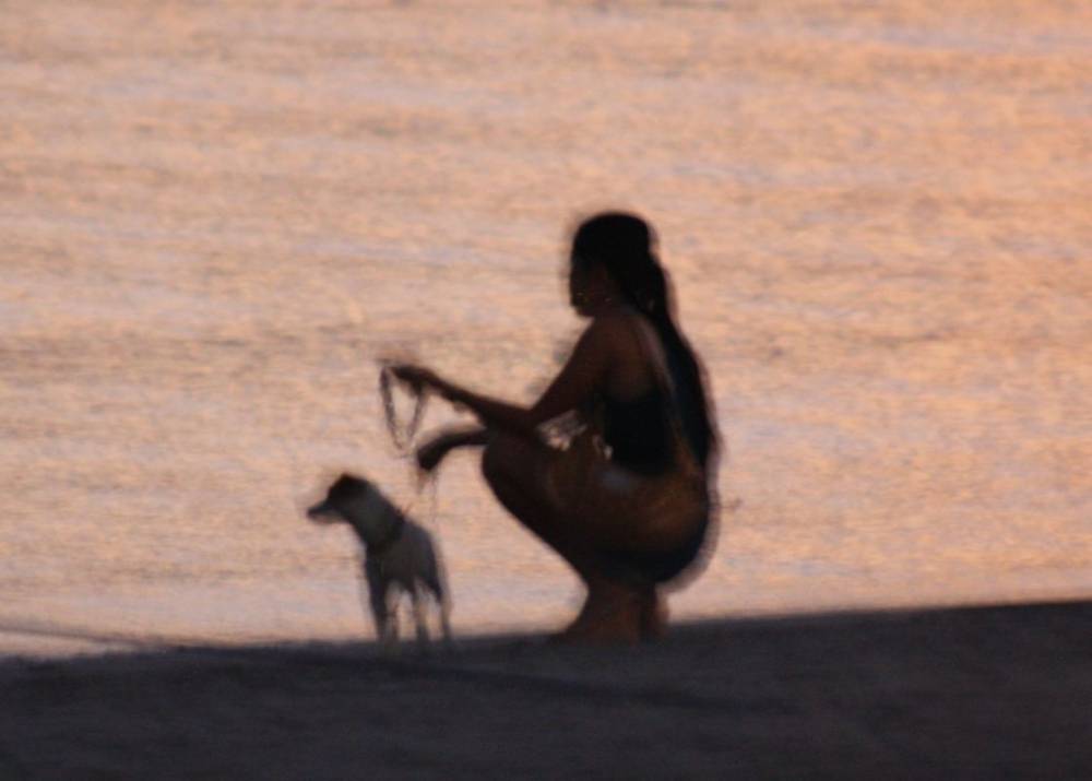 Lady with dog on the beach at sunset 001.jpg