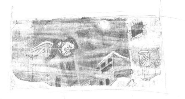 This was a practace peice, trying to only use pencils of a varying degree of calibers. Also, I was wanting to see if I could give the feeling of wind and make the environment look a little more interesting. My concept was that when Silent Hill shifted into it's more twisted dimension, it would simply be a mirrored world, but it would be a barren frozen wasteland. Unfortunatley, Konami beat me to the punch with Silent Hill: Shattered Memories, as snow and the like had not been done at the time I was workin' on this peice. No matter!