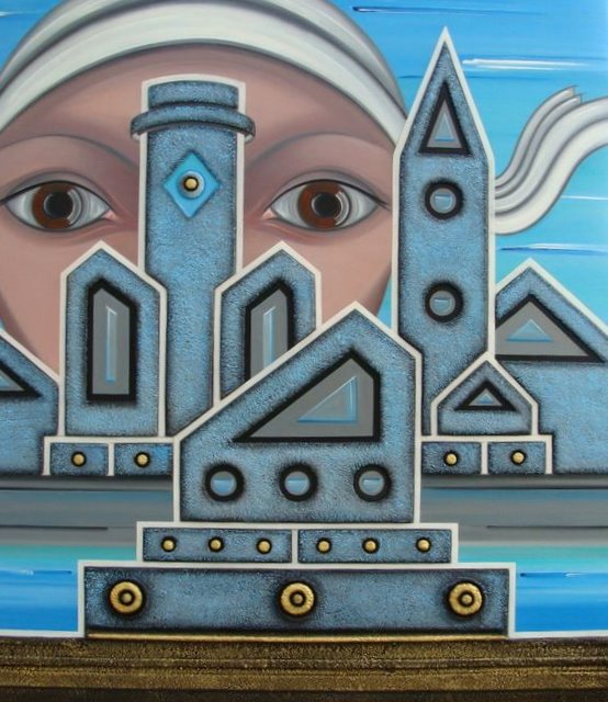 I used a sculpture Technique for this painting to form a 3D effect, the painting Titled Canary Wharf represents soaring Global economy.