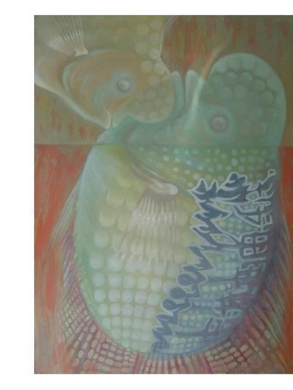 "GOT U WR I WNT U 2"by BUTCH PAYAWAL oil on canvas 36"x48" from the flowerhorn series.