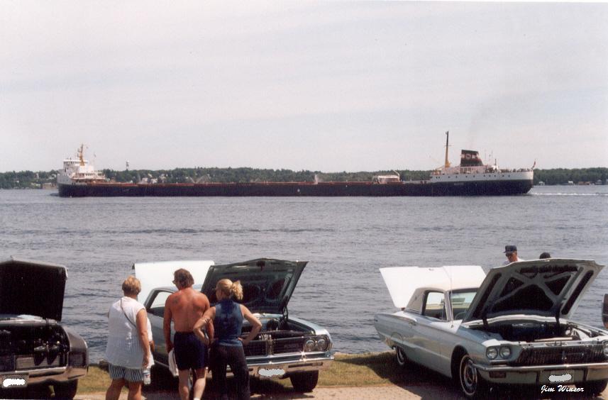 This is where Custom Freaks paths cross.The ship is passing by my Brothers custom car show at Brockville Ontario.We got an excellent salute from the ship.