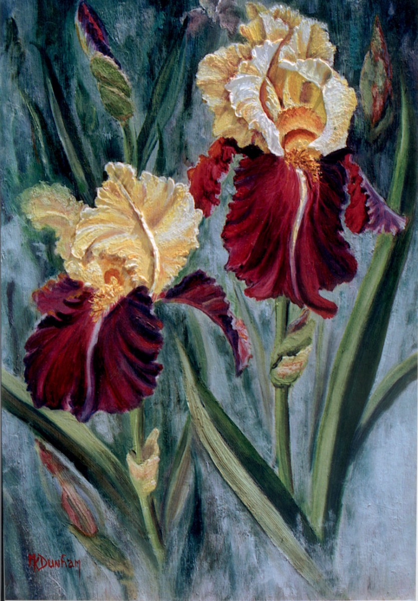 A Deep royal red and yellow Iris painting- oil on canvas. 20X16 Sold