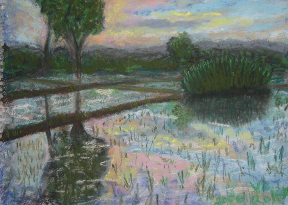 A small, (27cmX 38cm) landscape that I did as a practice painting. This was based on a photo of a rice field, or "palayan" that I took in Mindanao, during a recent trip to Davao del Sur at planting time. The original photograph can be seen on one of my member's albums at: