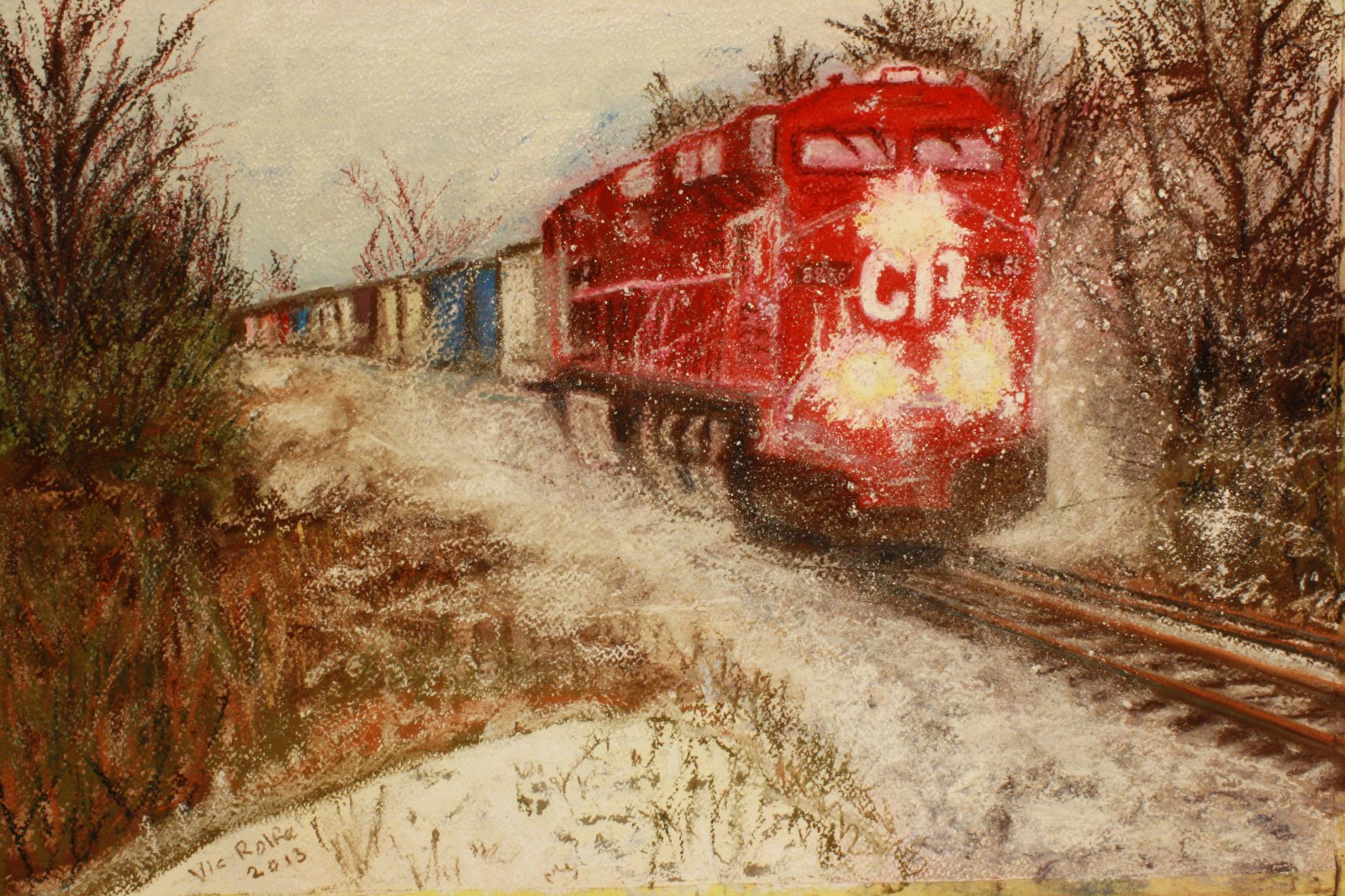 The finished article. This is as far as I am going with this. If try to improve it, I will just end-up spoiling the painting. Anyway, I think it captures something of that beautiful locomotive blasting the snow away as it pulls a train through the first snowfall of winter.. I would just like to thank Jim Winsor for allowing me use his excellent photograph - to which this feeble attempt of mine does very little justice!