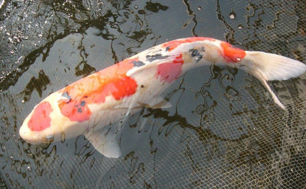 Taisho Sanshoku Nishiki-goi - currently in the very capable hands of Matsumoto-san of Rishouen (Koi dealers) in Ishida, Kokura, Kita Kyushu, Japan (January, 2007)