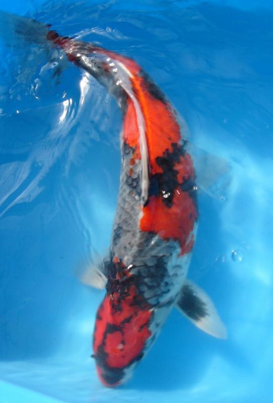 My proud Gin-rin Goshiki-Showa Sanshoku cross, Kawarimono Nishiki-goi - currently in the very capable hands of Matsumoto-san of Rishouen (Koi dealers) in Ishida, Kokura, Kita Kyushu, Japan (January, 2007)