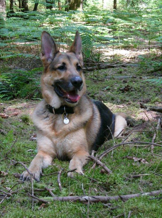 My mate, Tim Penycate's dog. Another RSPCA rescue dog. Not a pedigree but pretty well pure German Shepherd. (I'm not sure where the crooked tail comes from but it in no way alters the fact that Benj is one of the most handsome dogs that I have ever come across!) Here he is, full of energy and really enjoying a day out on M.o.D land at Woolmer Forest, Whitehill, Hampshire, in the South of England, UK