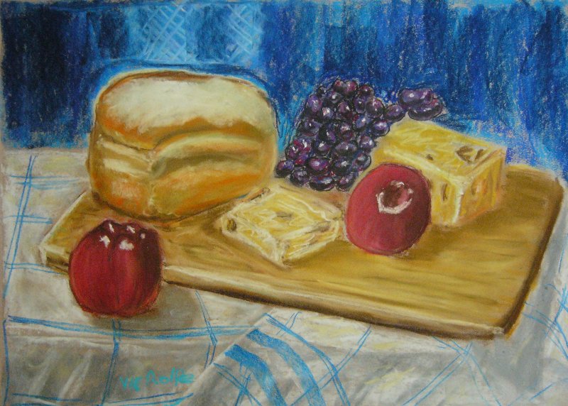 Still Life, with Bread, Cheese and Fruits