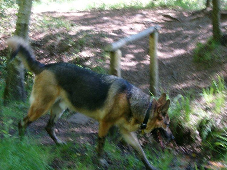 My mate, Tim Penycate's dog. Another RSPCA rescue dog. Not a pedigree but pretty well pure German Shepherd. (I'm not sure where the crooked tail comes from but it in no way alters the fact that Benj is one of the most handsome dogs that I have ever come across!) Here he is, full of energy and really enjoying a day out on M.o.D land at Woolmer Forest, Whitehill, Hampshire, in the South of England, UK
