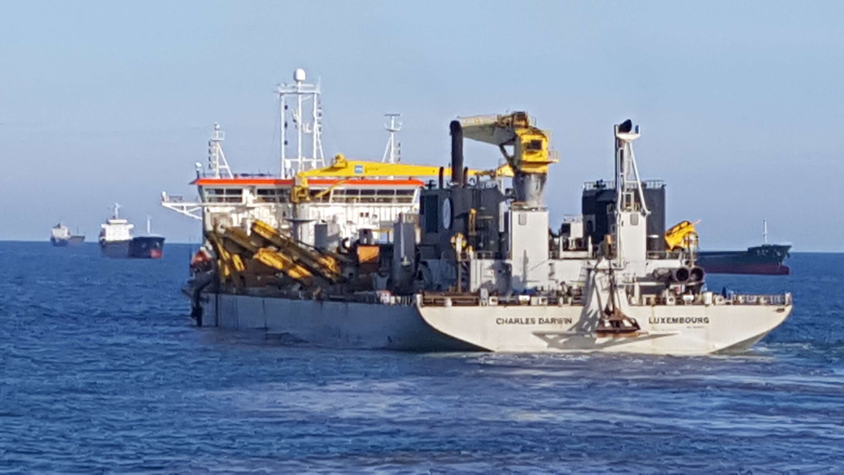 The Luxembourg registered dredger, Charles Darwin, working outside the Northern entrance at the port of Kaohsiung, some time during August, 2016