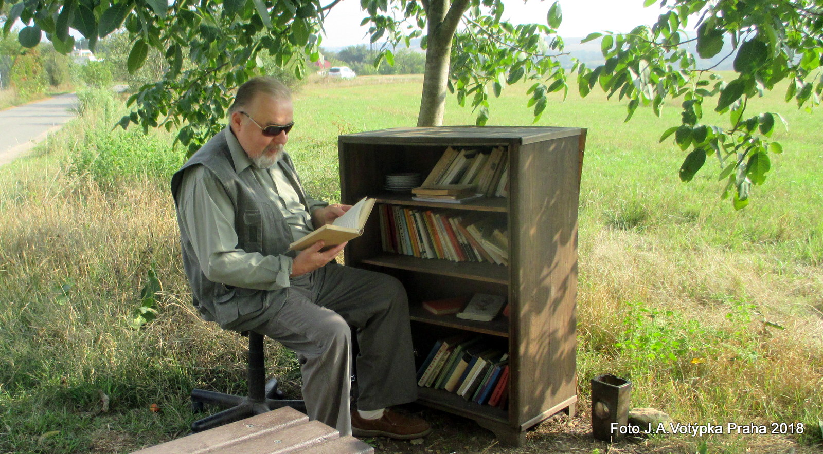Out in the fresh air, sitting in an open field reading books in a nice shady spot under a tree... I brought the whole bookcase, so not much chance of running out of reading material!