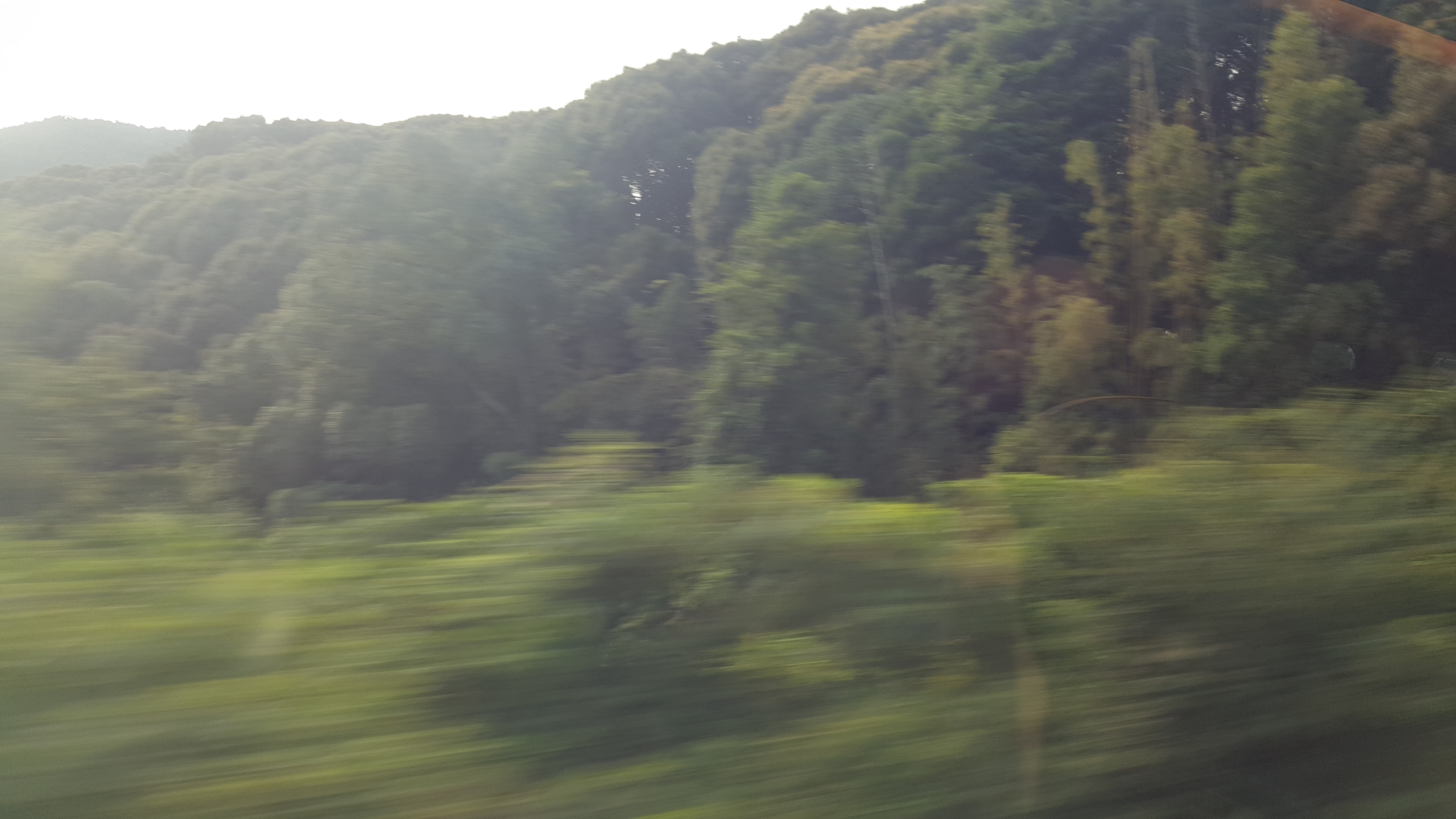 Northern Kyushu countryside viewed from the Shinkansen whilst travelling at speed