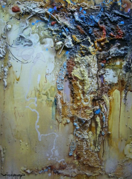 A mixed media relief art painting by Mike Herrera, seen in one of the art galleries in Ermita, Manila, sometime around the year 2005?
