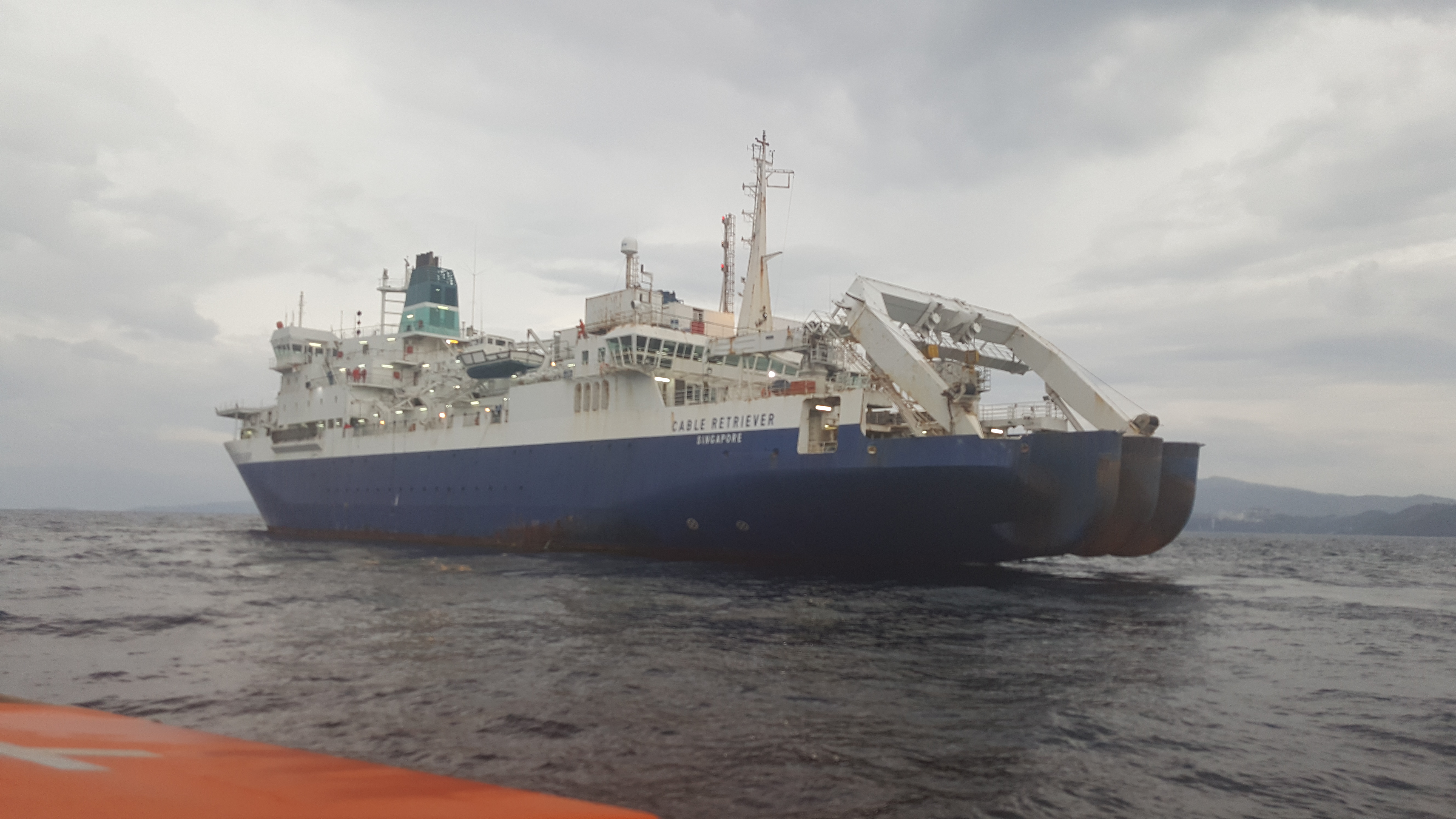 As seen from the Port lifeboat, which is in the water for exercises - hence the fact that you can't see a lifeboat on the Port side of the ship!!