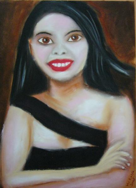 Soft pastel on paper. Portrait of Beverly, from the Amazonia Bar in Ermita, Manila. Beverly is one of the waitresses there and she very kindly bought me a nice cold San Miguel Beer for this one!