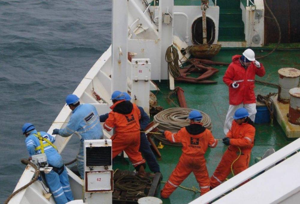 Recovering a Telemark modular buoy, that was used by c.s. pacific Guardian on the CANTAT 3 submarine telecommunications cable repair - off Newfoundland, April, 2007