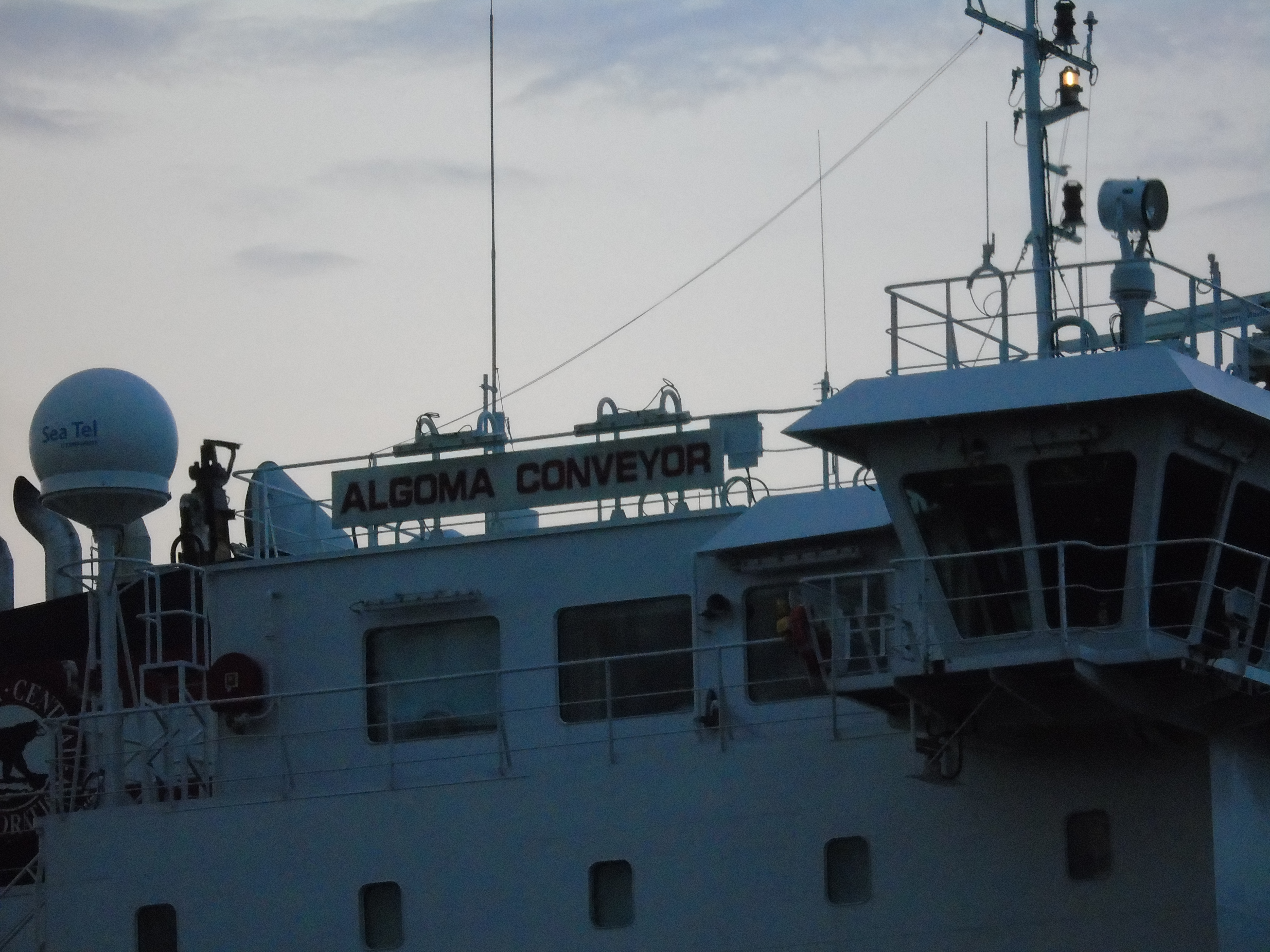 DAY 2 -- ALGOMA CONVEYOR - Close-up of the ship's Bridge and name plate