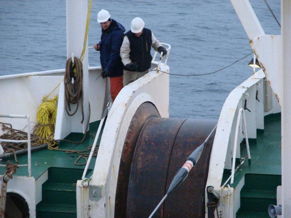 Me and Jim McKendrick looking out for damage on the cable, as the ship pics up kilometer after kilometer of the damn stuff!