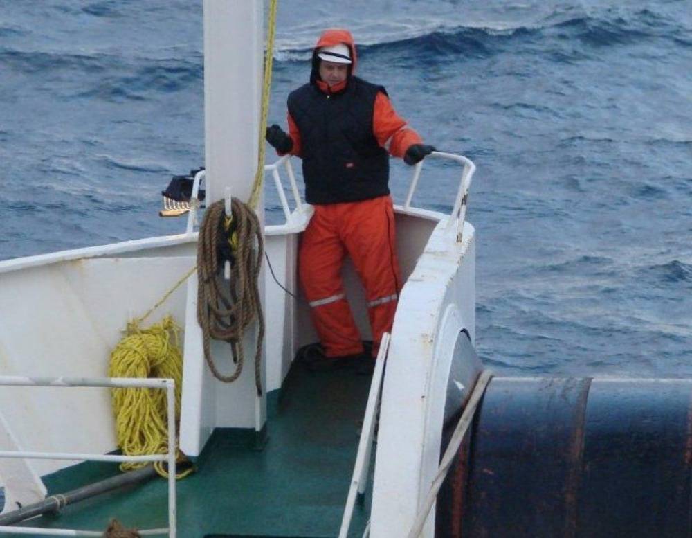 "Yours Truly," very hard at work aboard the cable repair ship c.s. Pacific Guardian, on a telecommunications cable repair in the middle of the North Atlantic Ocean.