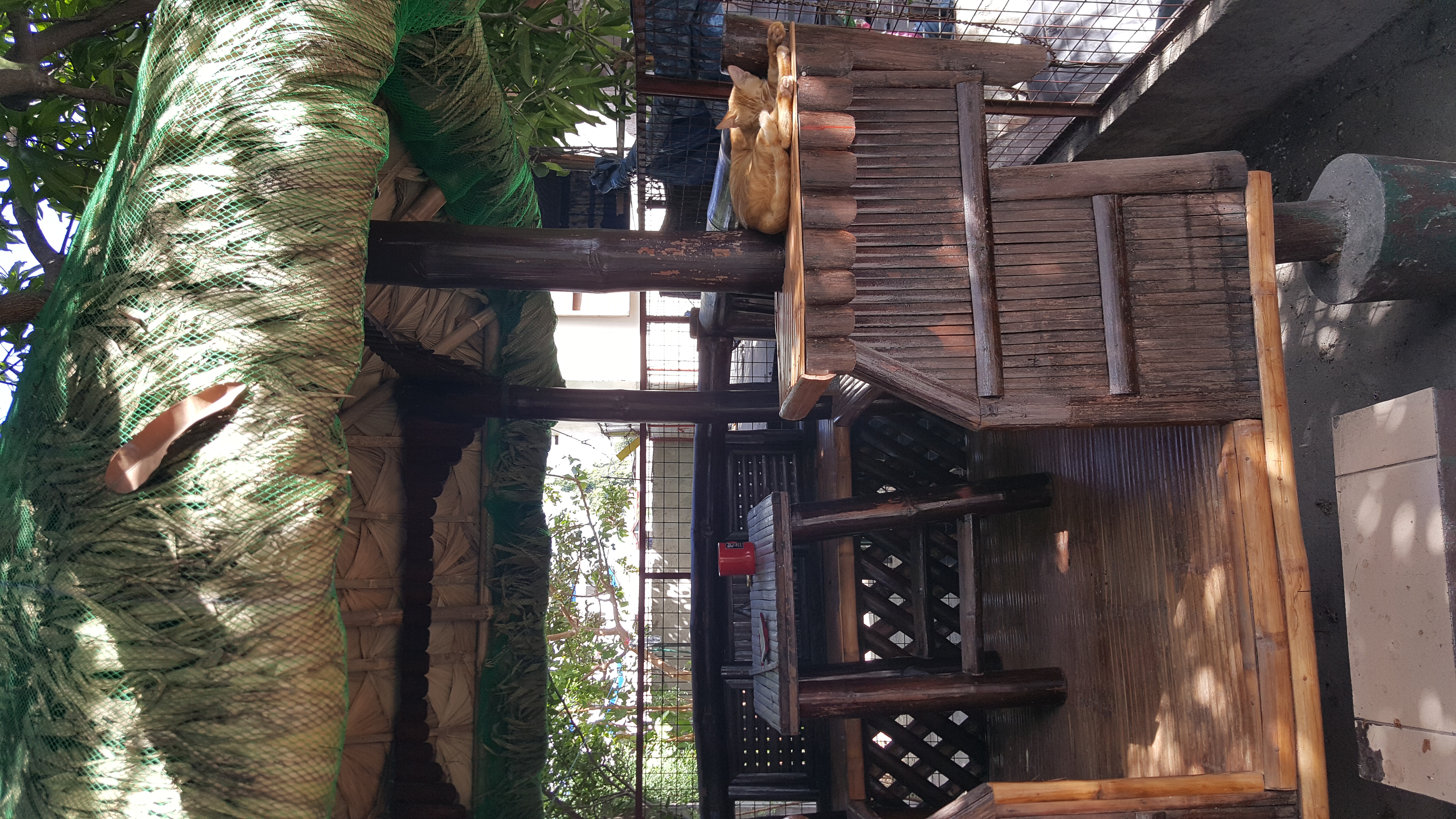 Young ginger cat making himself at home in my bahay kubo (nipa hut) in the Philippines.