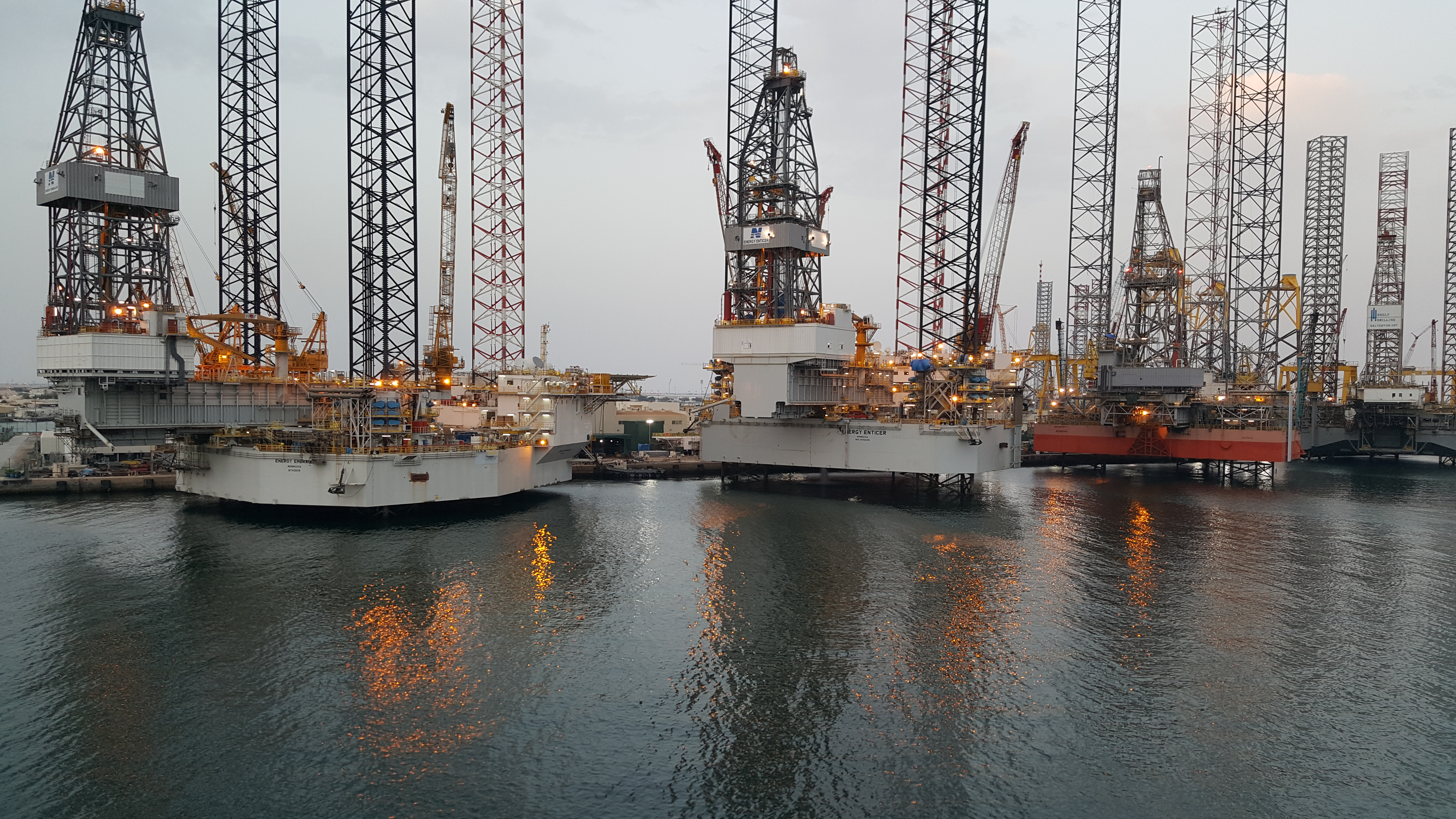 Drilling rigs in the port of Hamriyah, UAE - March 2020