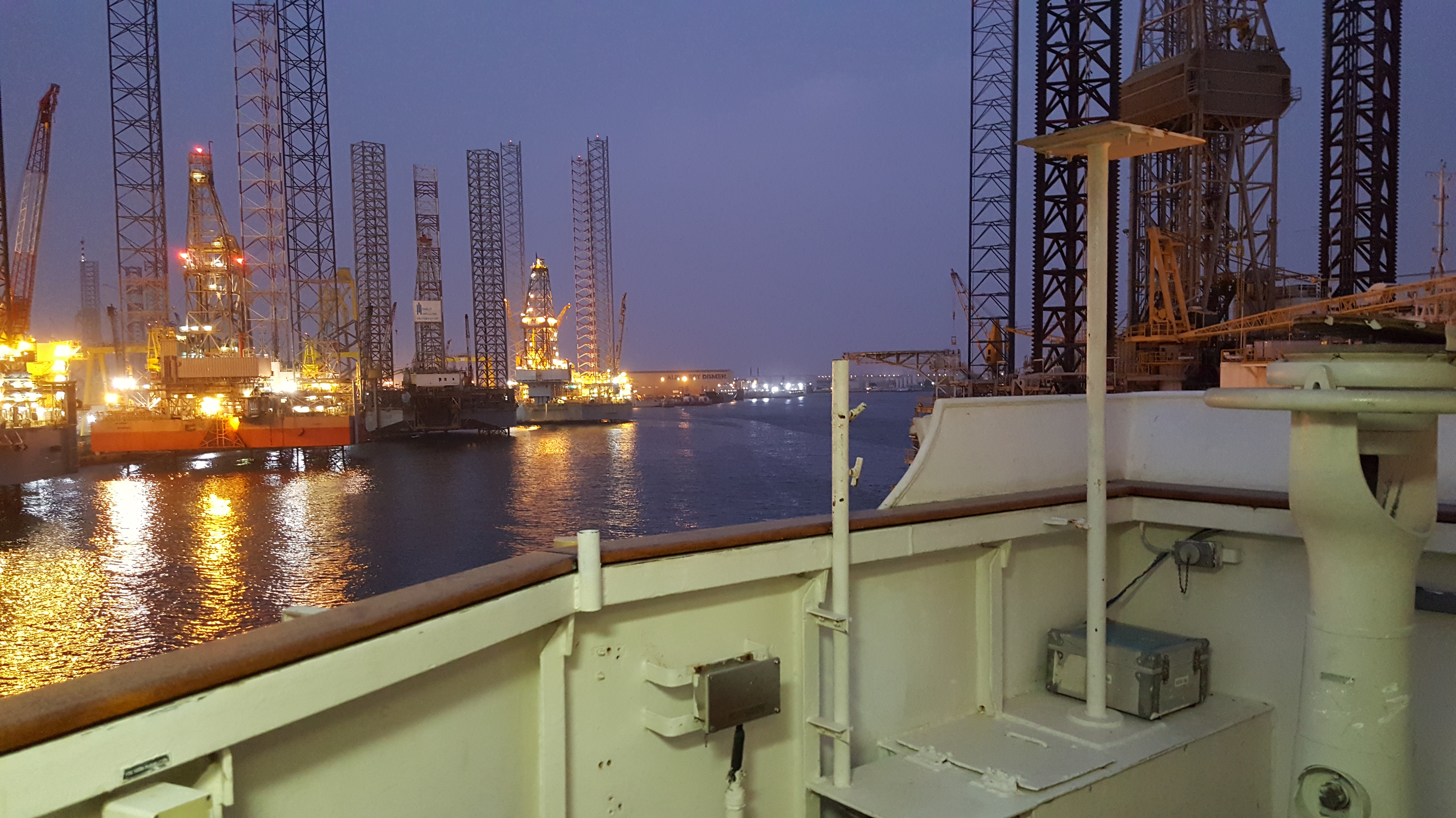 Puwesto ko 'to! (Tagalog for "This is my place!") That's my little perch, of an evening, whilst sitting-out the quarantine onboard CS NIWA in Hamriyah Port, UAE.