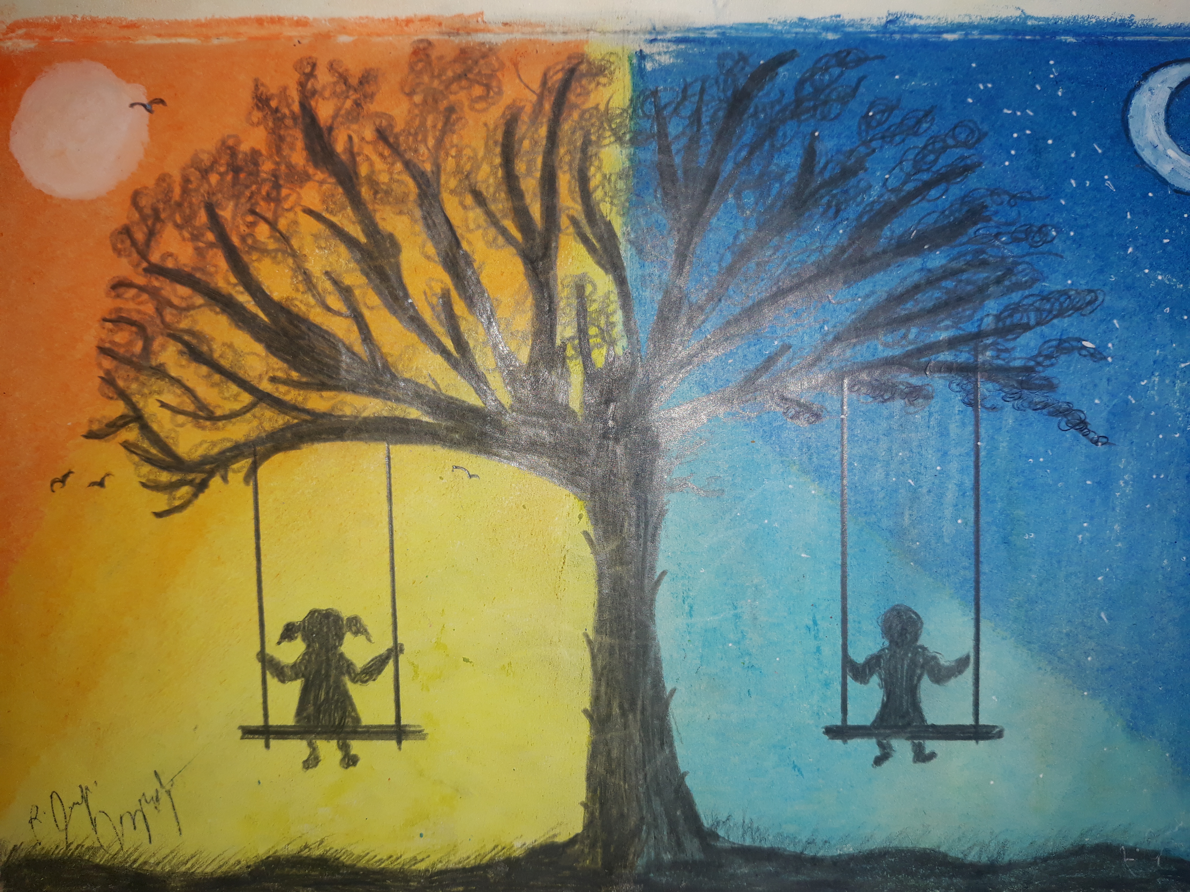 I saw this kind of art from Facebook so I did the same. I use pencil and I believe pastel, I can't even remember what material I did used, because I did this art maybe one year before uploading this?