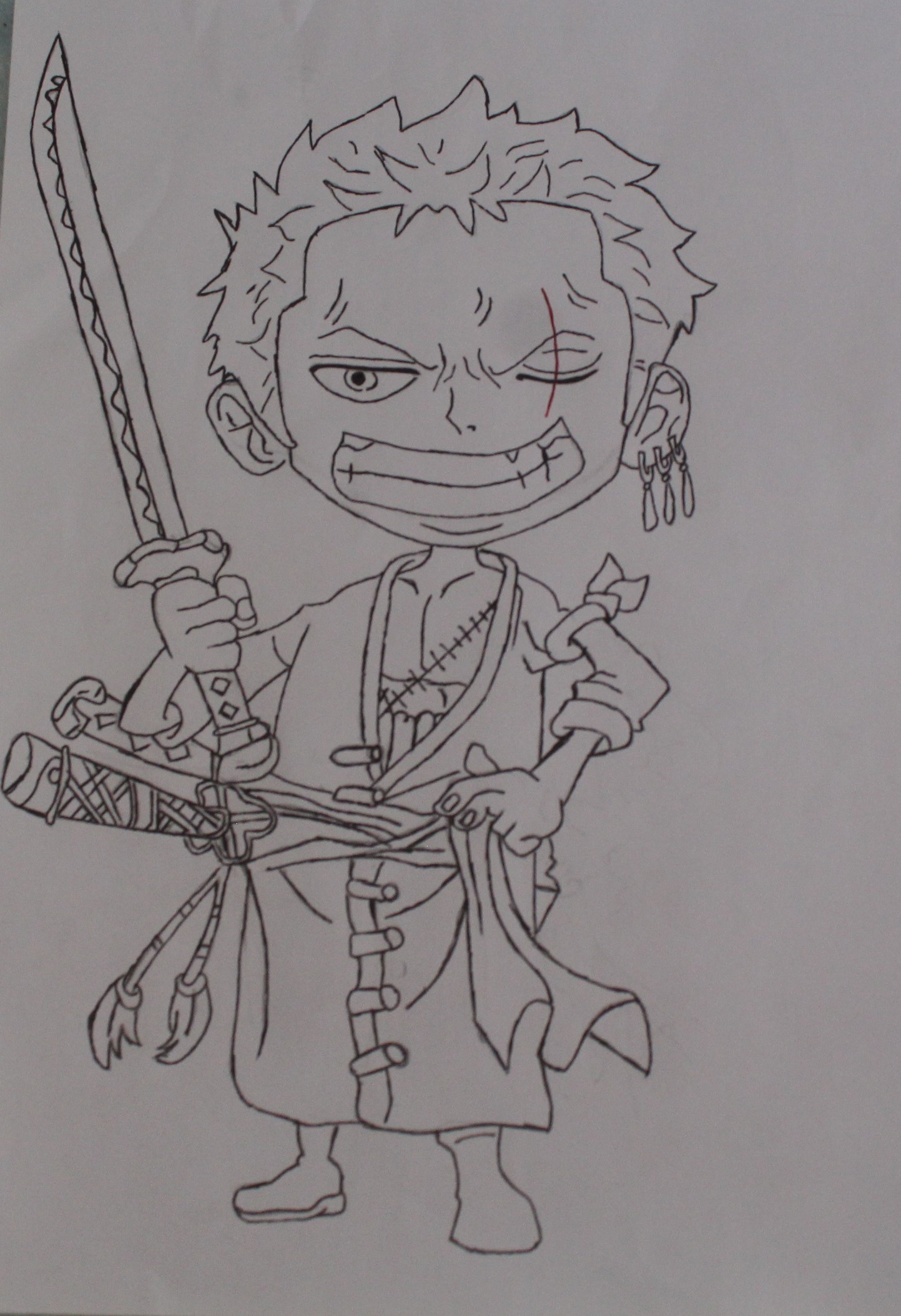 Roronoa Zoro is a fictional character from anime series - One piece. This drawing is called Chibi and I only used pencil mongol 2 and ballpoint.