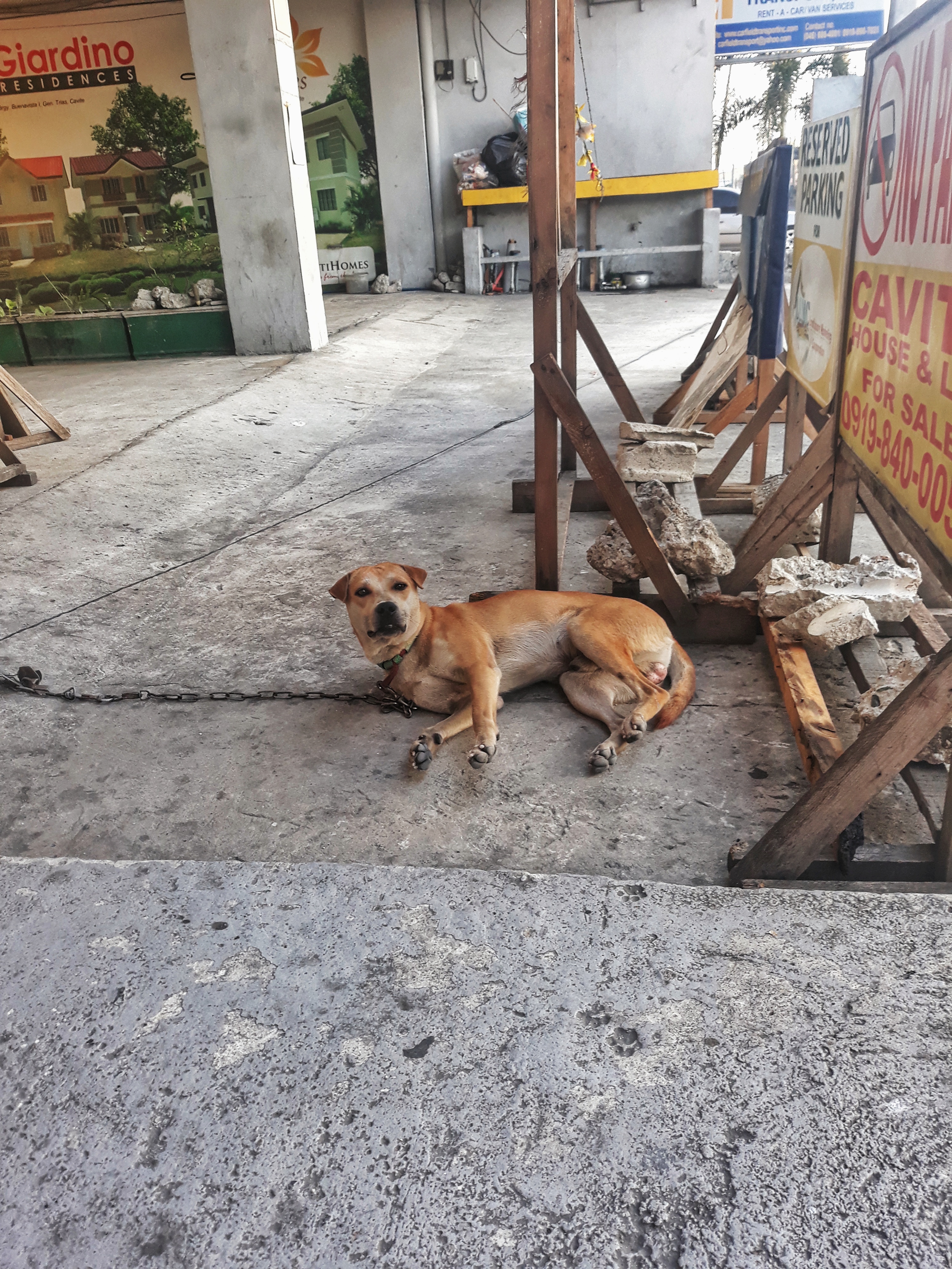 This is Brownie the dog near our church. He is well treated of all the Guards who is working in this building and he is wearing chains because he's near the highway.