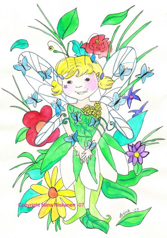 First on my Maija series. Maija is a girl who loves adventures. Here she is a fairy playing with butterflies.