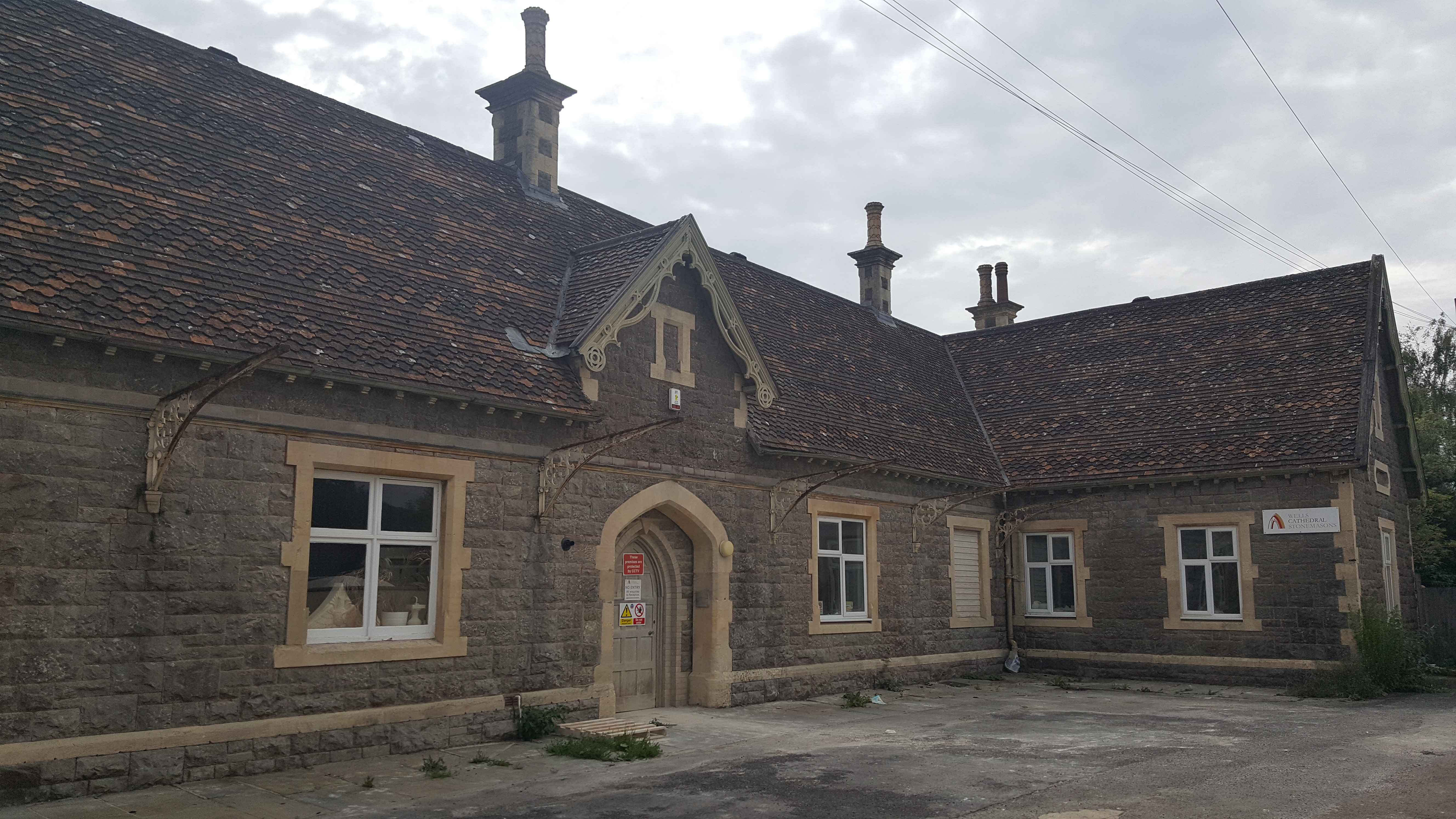 The old Strawberry Line station building in Cheddar, Dorset, South West England.