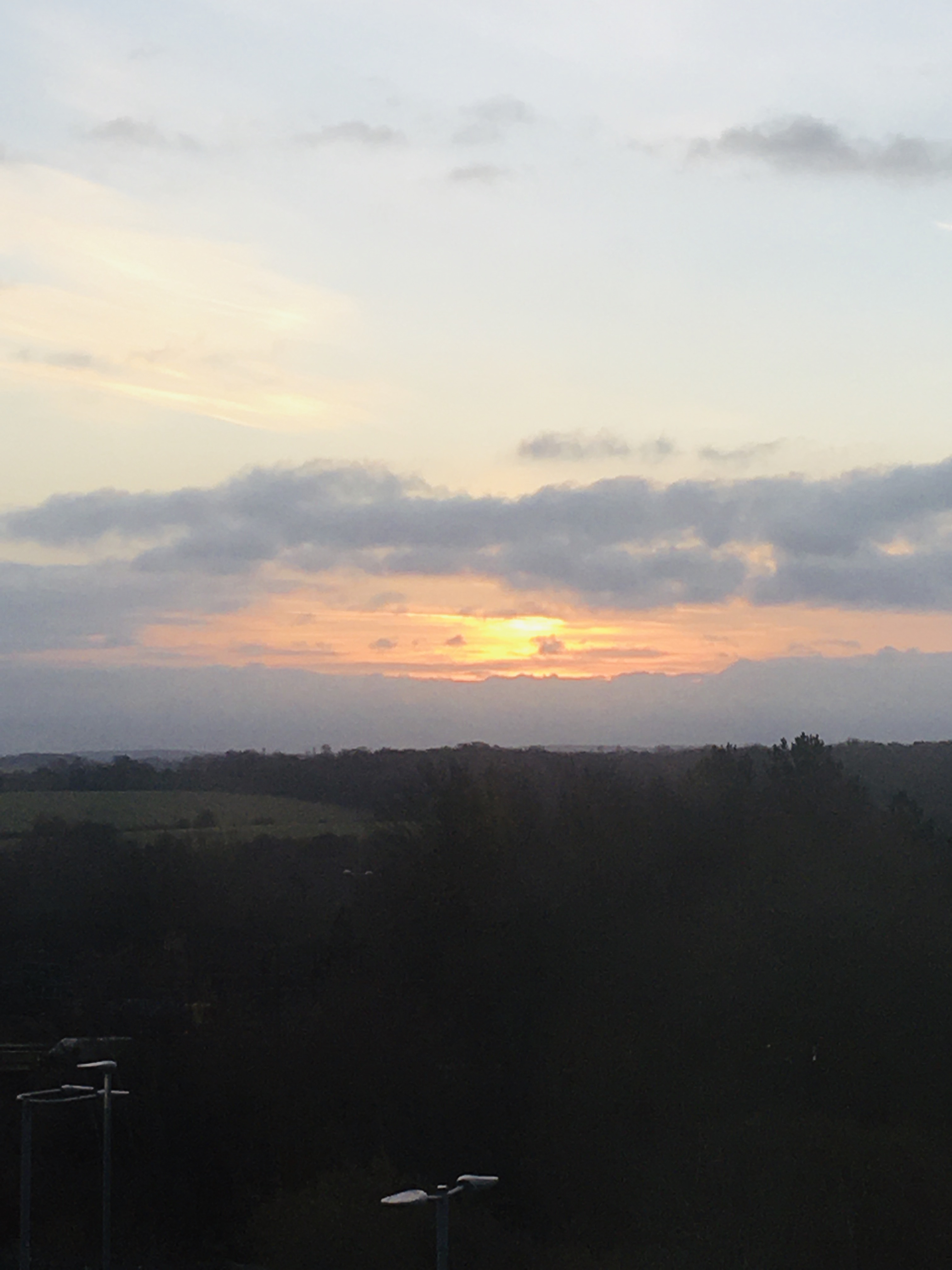 The early sunrise breaks through the clouds over Basingstoke
