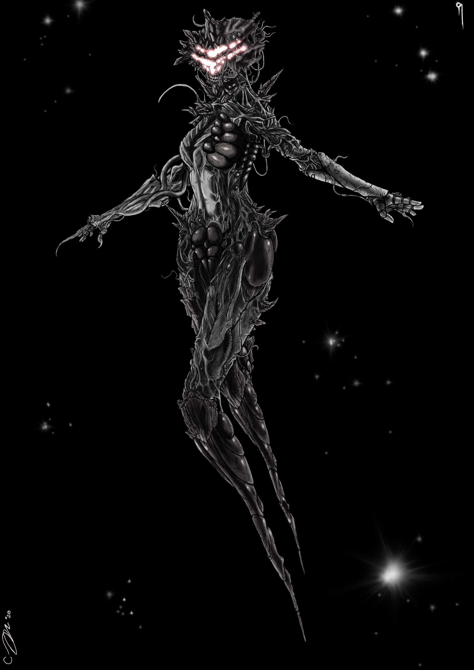 "Mythical tales tell of creatures that would rise from the the cold depths of the sea, feminine yet monstrous shapes that would sing a song that would charm brave, seafaring adventurers to their doom. Sometimes, the cold, dark, fathomless sea is likened to that of the bleak void that envelops our tiny world and spreads out further than we'll ever possibly know. Would it then seem so odd, that now there are tales of those void-faring souls that ship resources from Earth to our budding colonies, on long, lonely voyages through the sea of stars who claim to have heard a sweet, alluring melody that did not issue from the crew, nor the ship itself? That there are those who swear upon their gods, that when gazing into that infinite blackness, they glimpsed a feminine, humanoid shape.. black as the void, only outlined by the very faint glow of the stars..."