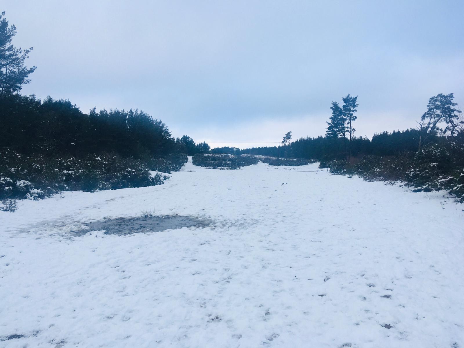 A snowy landscape in the Hogmoor Inclosure.