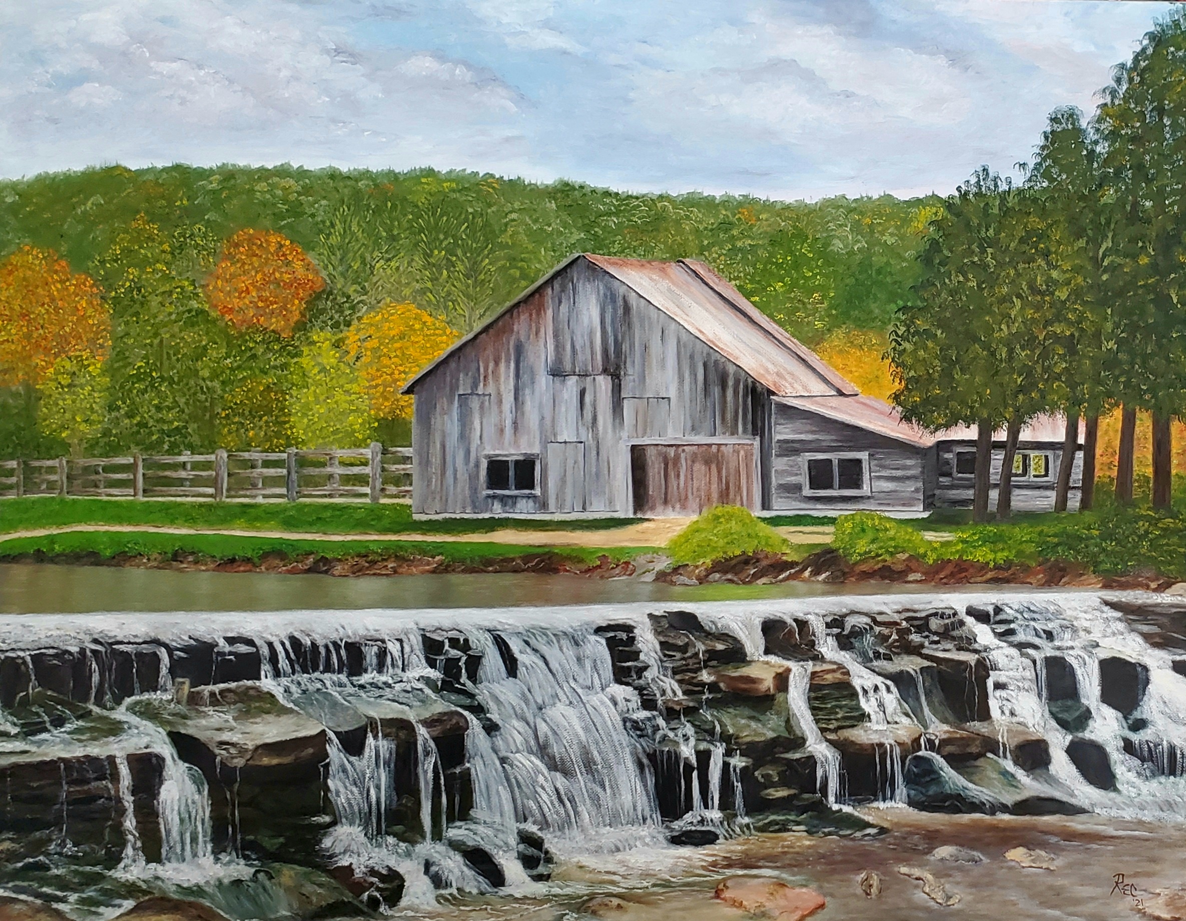 Barn & Waterfall