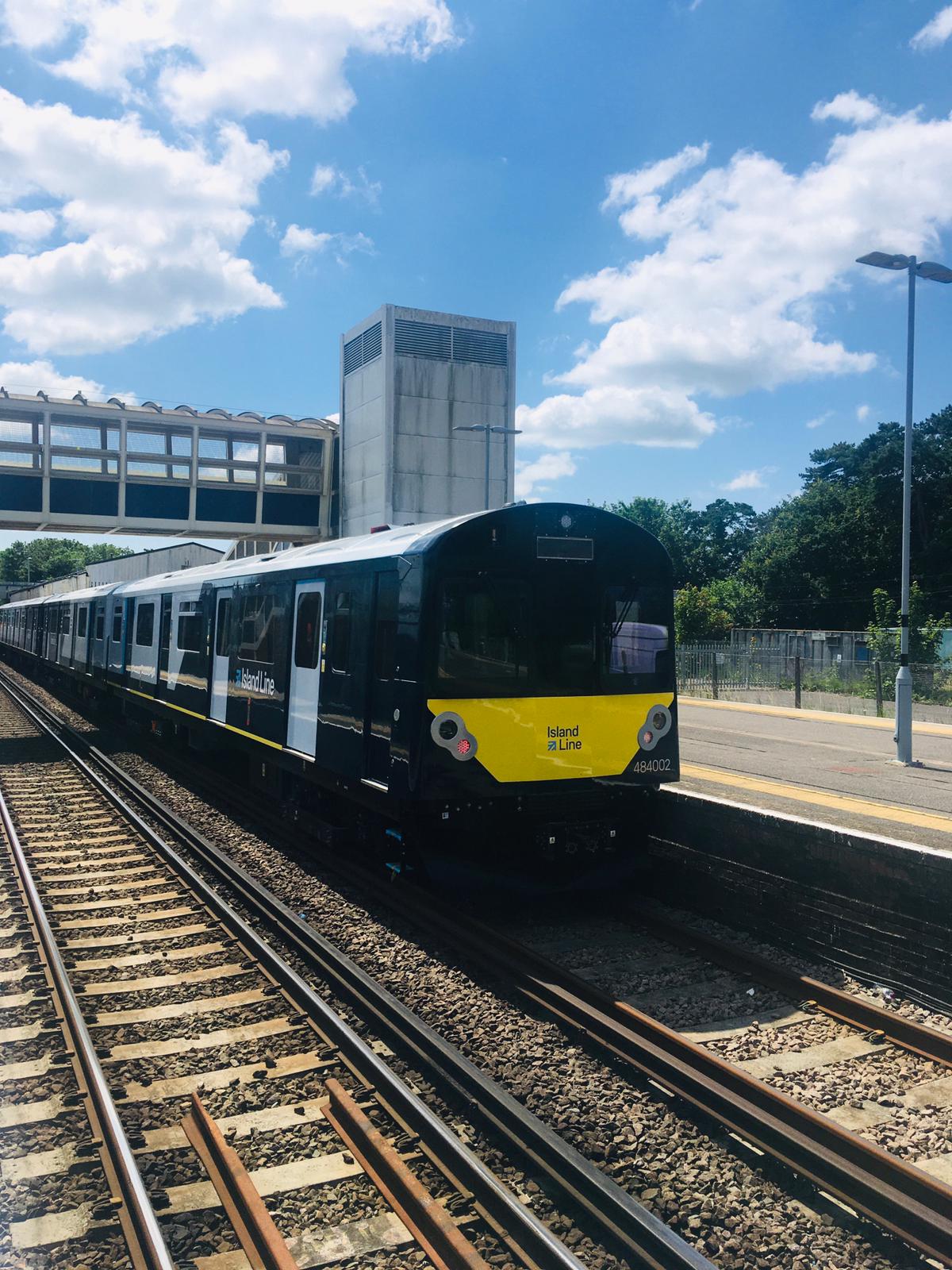 A Class 484 on test at Fareham on a hot sunny afternoon. These trains are replacing the old 483 Units that have carried out over 30 x years of service on the Isle of Wight (after 50 x years on the London Underground).