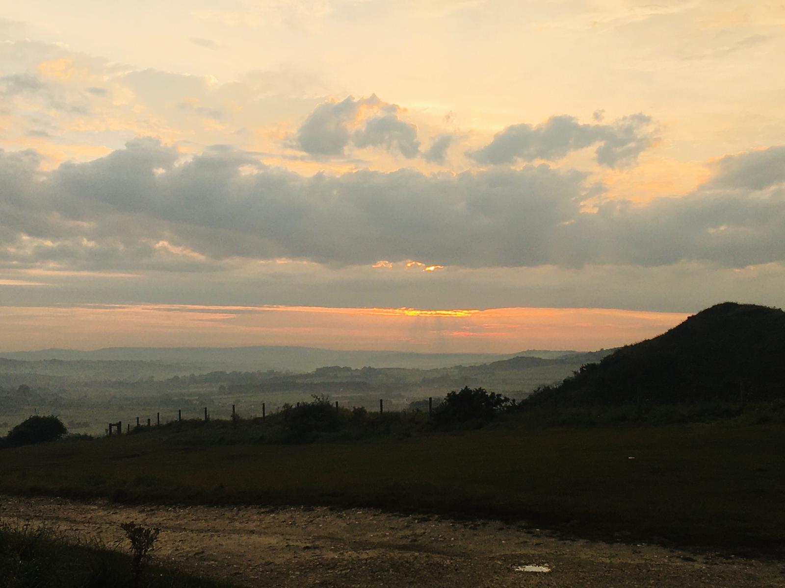 The storm over the Isle of Wight has passed and the sun starts to sink over the receding clouds.