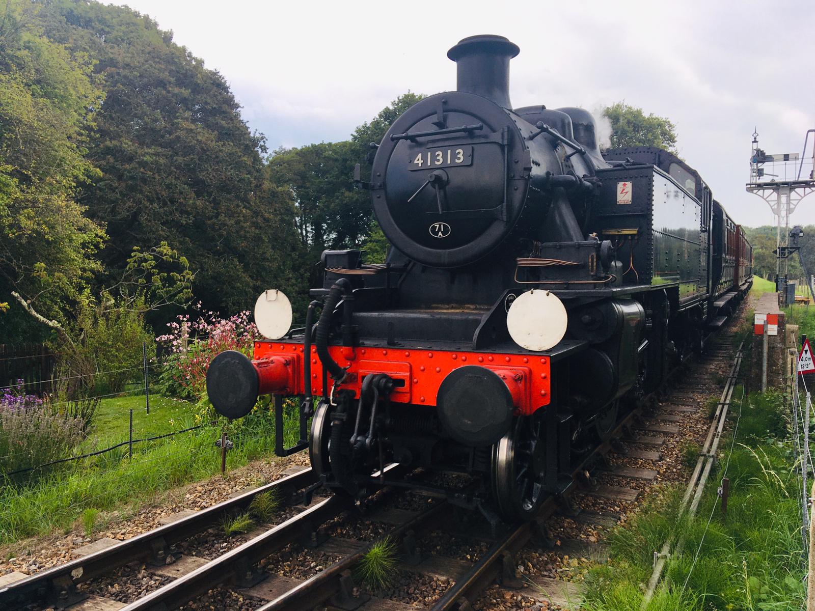 Ivatt Tank 41313 arrives at Havensteet on the Isle of Wight Steam Railway on the 15:33 Smalbrook Junction to Wootton service.