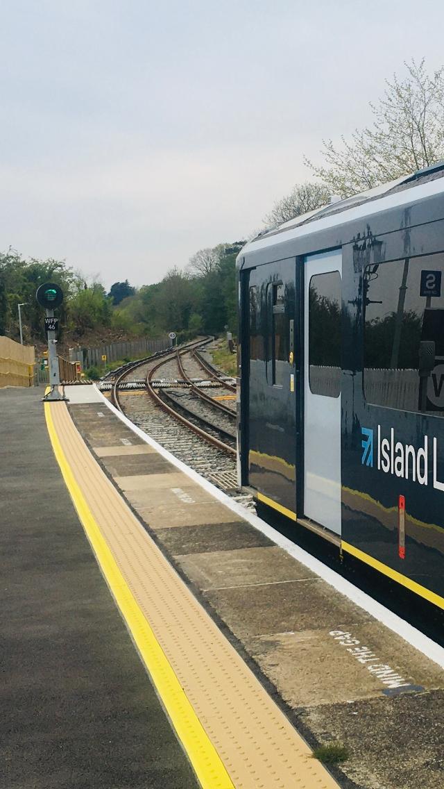 484 002 on Island Line, waits to depart from Brading with 2D39 15:16 Ryde St Johns Road to Shanklin. The Signal is Green and departure is imminent!