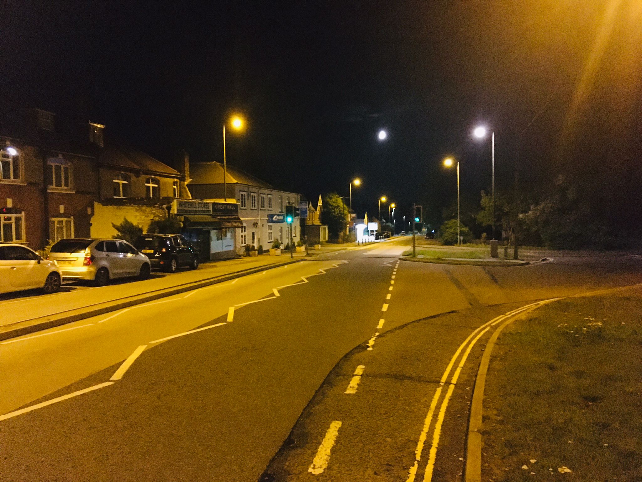 Whitehill is a village in Hampshire, England and part of a small town called Bordon. This shots shows a contrast of the street lighting and a “Supermoon” rising to the South.