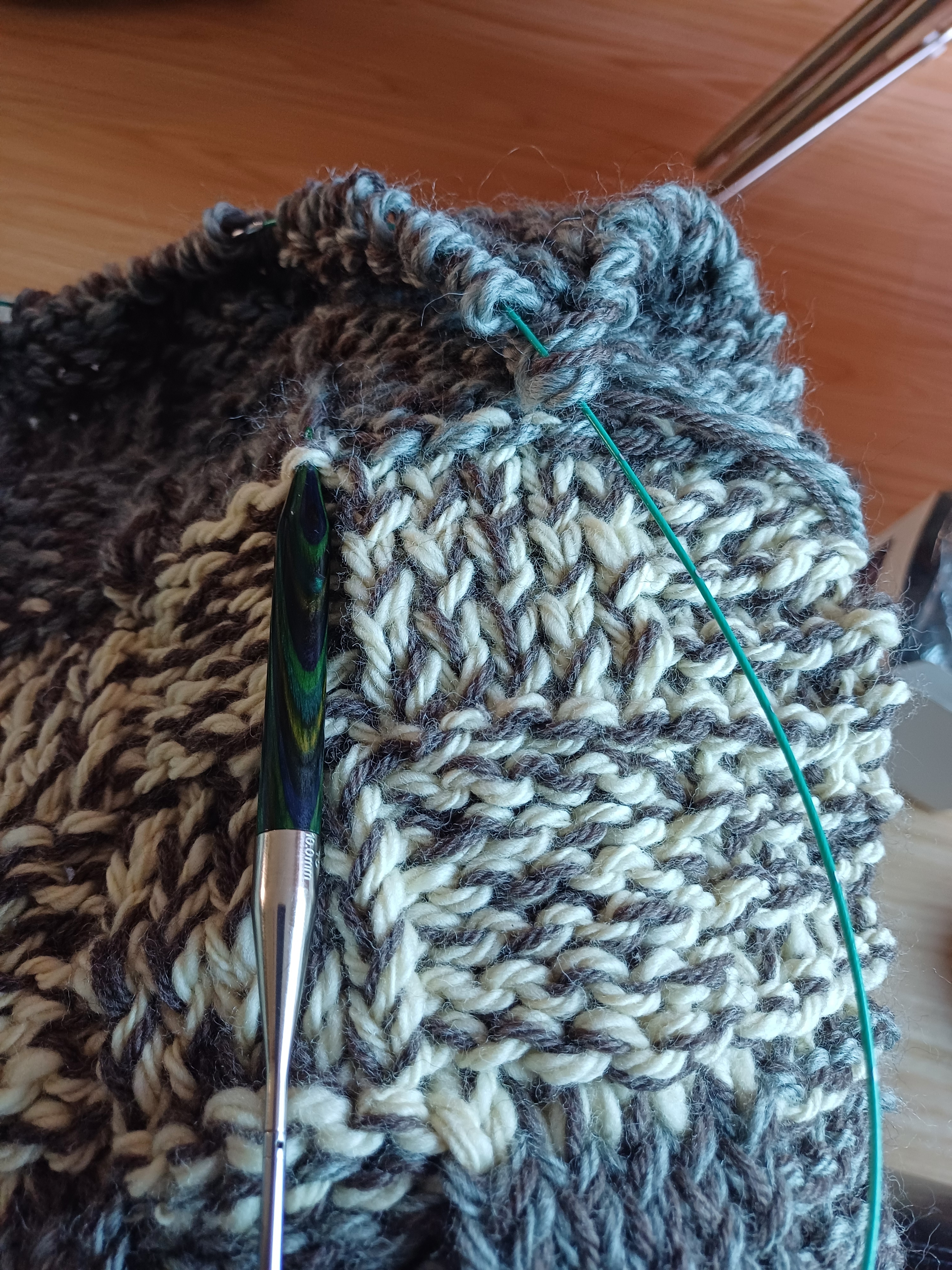 It's just a simple woolen rug, knitted with home-spun Corriedale (natural grey) and Merino wool, with an additional yarn of some Wool of the Andies ready-spun 100% woolyarn - just to give it some bulk.